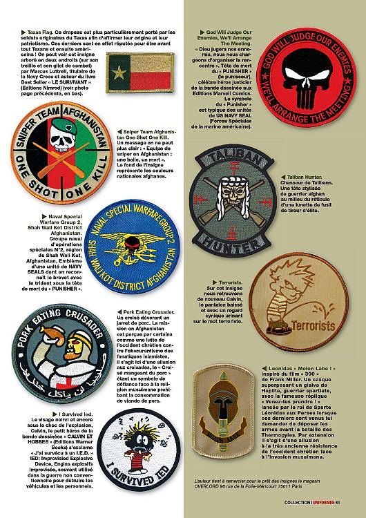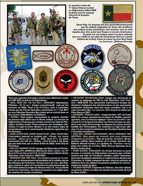 Combattre ailleurs pour ensuite combattre chez soi. Depuis 2001, d'abord aux États-Unis puis en France, ces patchs autrefois utilisés en milieu militaire finissent par se retrouver dans les uniformes de police. Cette «morale spartiate et templière», utilisée pour forger des hommes et des femmes dans les guerres du Moyen-Orient, finit par décorer les écussons de police censés représenter la République.